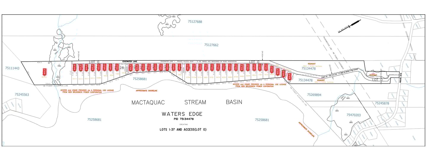 New Brunswick Power Corporation (NB Power) owns the Mactaquac Head-Pond and a small buffer of land around the waterway. It's important to note that this arrangement is consistent with all properties on the Mactaquac Headpond. NB Power allows use and access to this section of land via a Personal Use License (PUL). The usage and access granted are specific to the portion in front of the landowner's property. Typically, the Personal Use License is granted free of charge and remains in effect for the duration that the landowner owns the property. For more information or assistance with the application process, feel free to reach out to the Developers at Waters Edge Developments Inc.